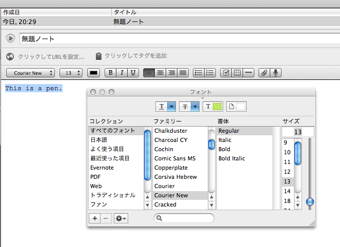 以下方法で指定できました:Evernote for Mac フォントの指定方法