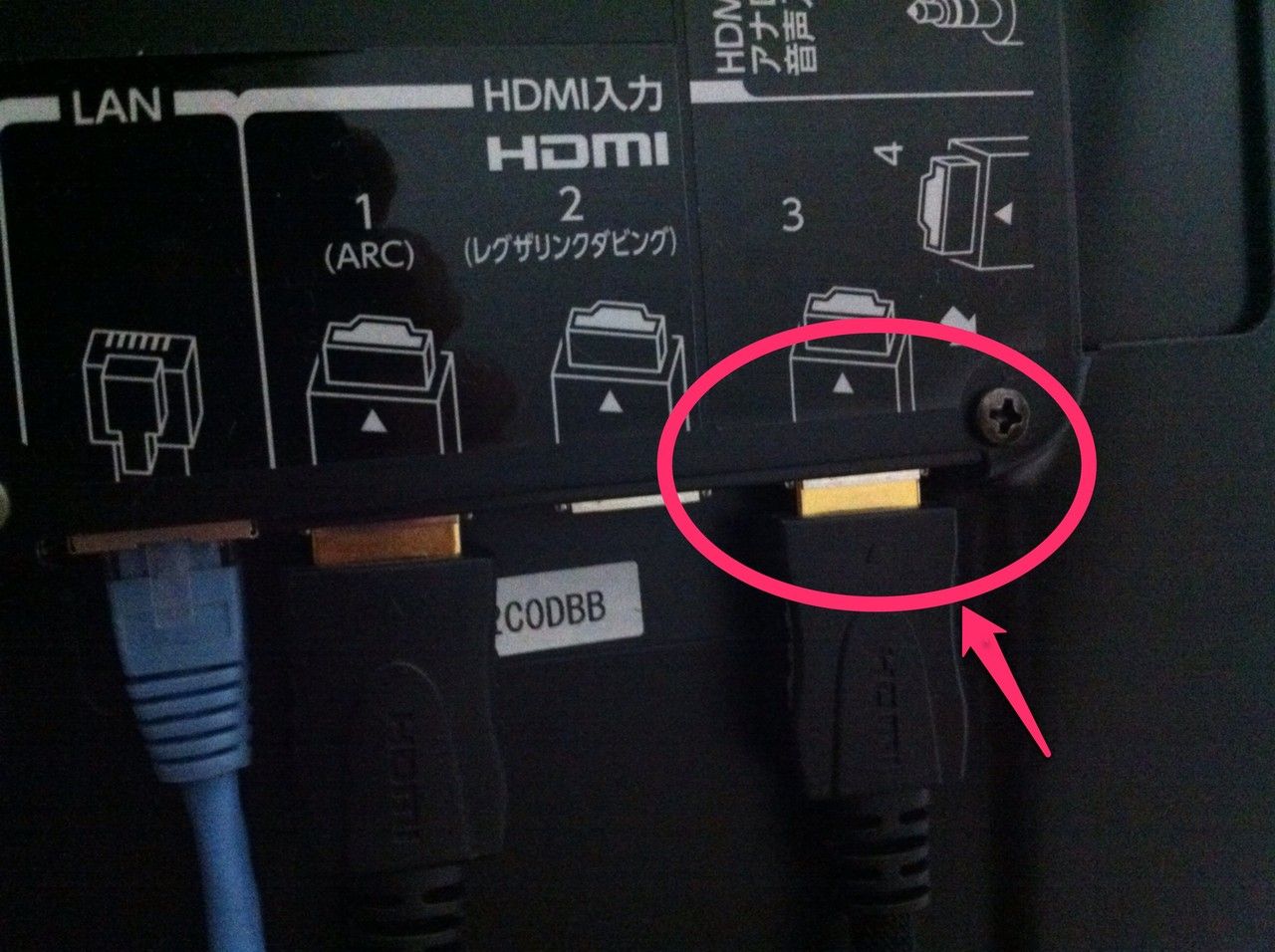 ウチでは、以下のように REGZA Z3 の3番目の HDMI端子に指しました。※1番は録画専用の USBへ。