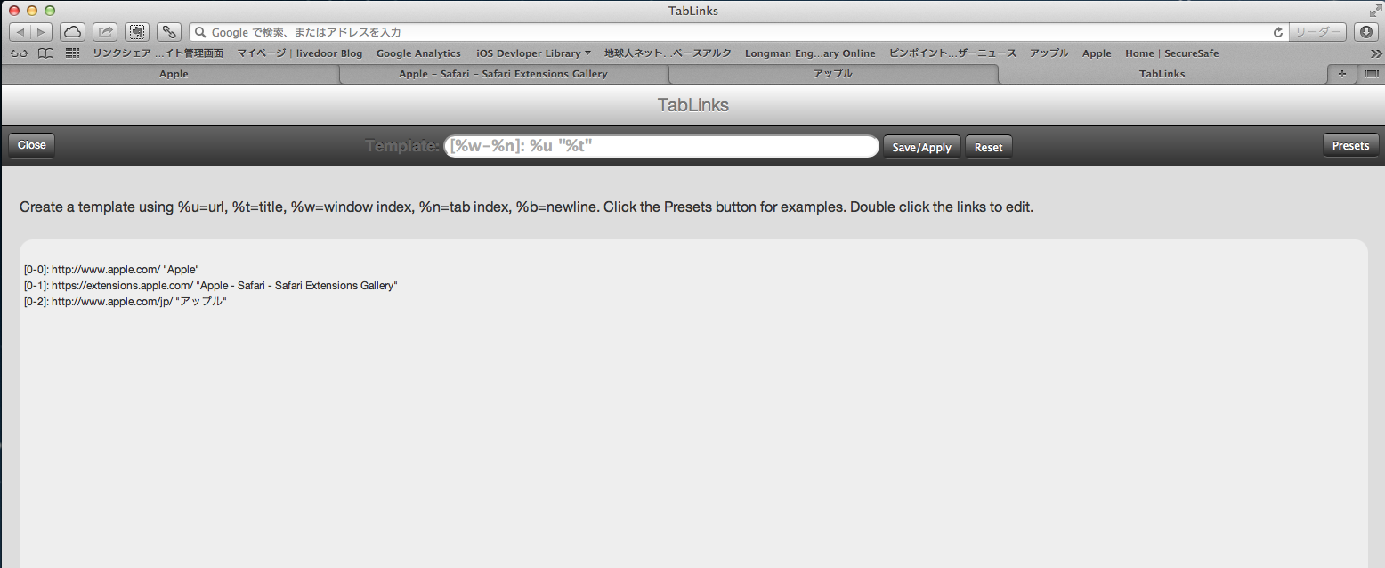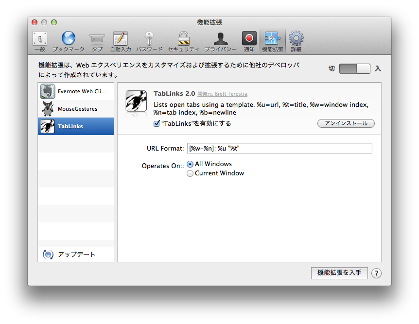 Safari 拡張機能; TabLinks インストール方法