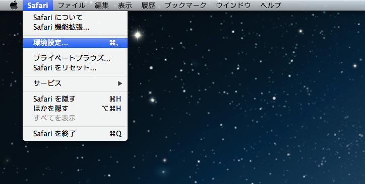 - メニューバーの「Safari」から「環境設定」を選択。