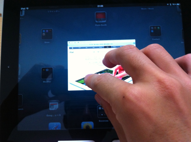 複数アプリケーションが起動している場合、を4本 または5本使って画面を右か左に動かすと、起動中の別アプリが現れます。