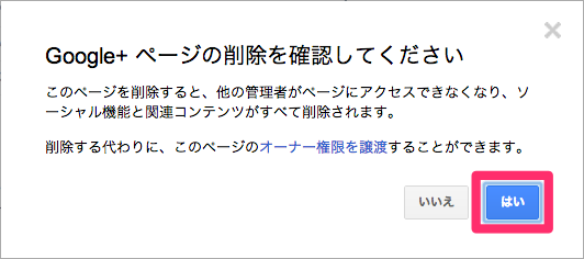 ここでは、作成した Google+ ページが不要になったときに削除する方法をお伝えします。
