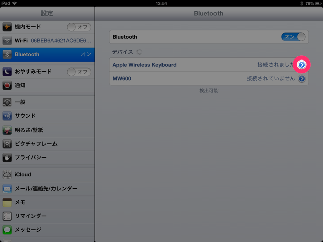 Bluetooth キーボードは、Apple Wireless Keyboard を使います。