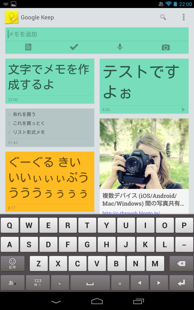 文字を入力し終わり、Enter をタップすればメモが完成し一覧に表示されます。