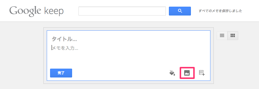 まずブラウザで Google Keep のページ に移り、メモ作成時に