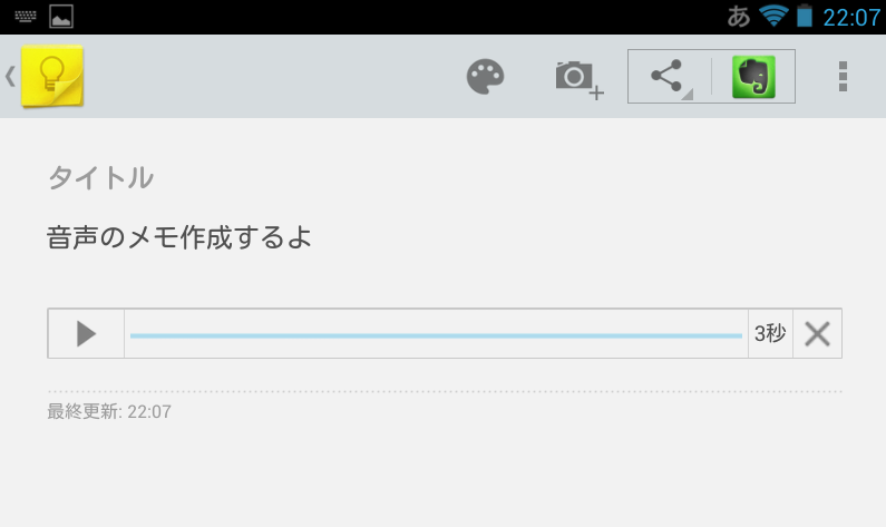 音声を入力すると、Google Keep が音声を解釈して文字にした内容と、音声自体の 2つが保存されます。その音声の録音時間も表示されます。