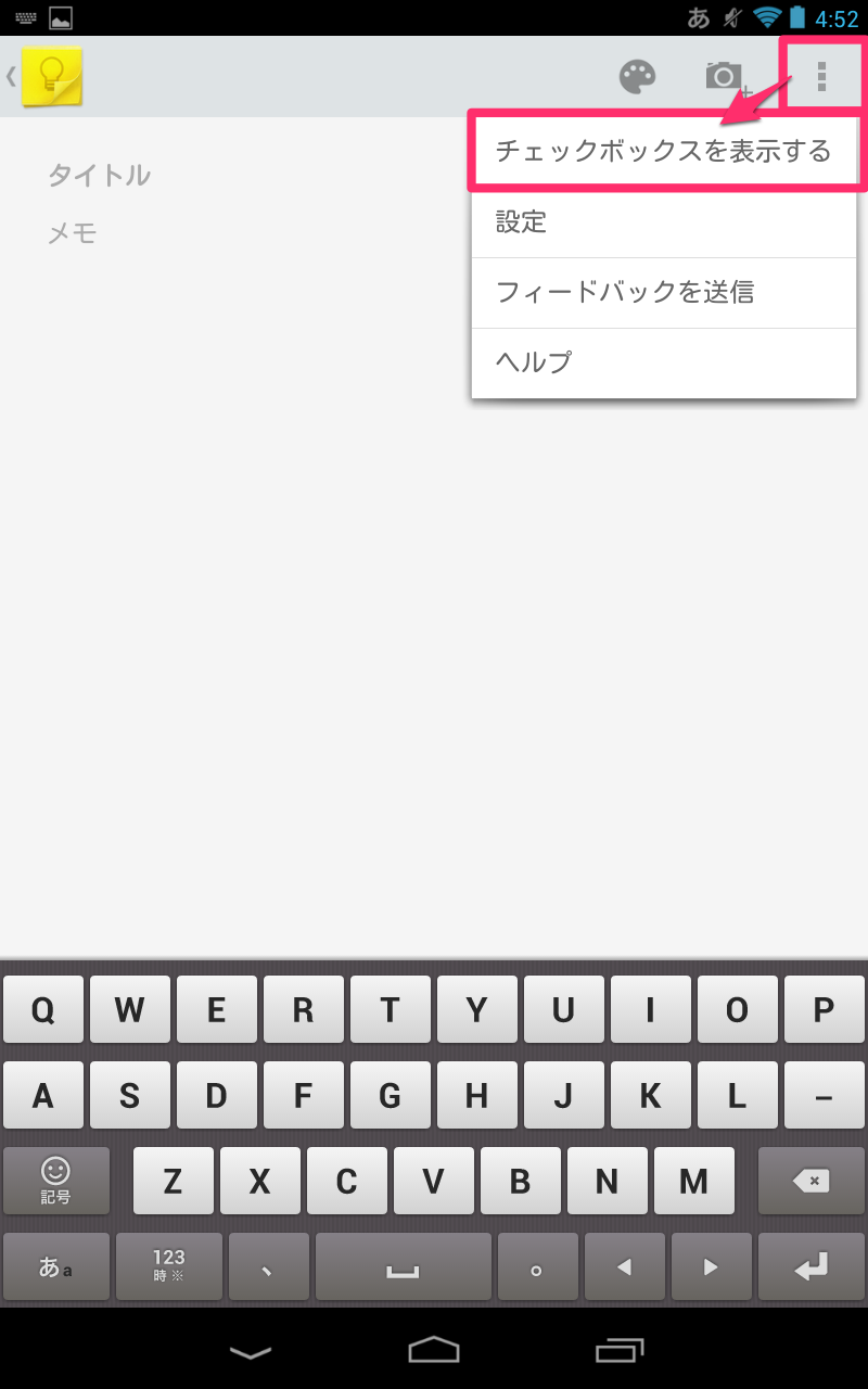 他のメモ作成画面からも、右上の