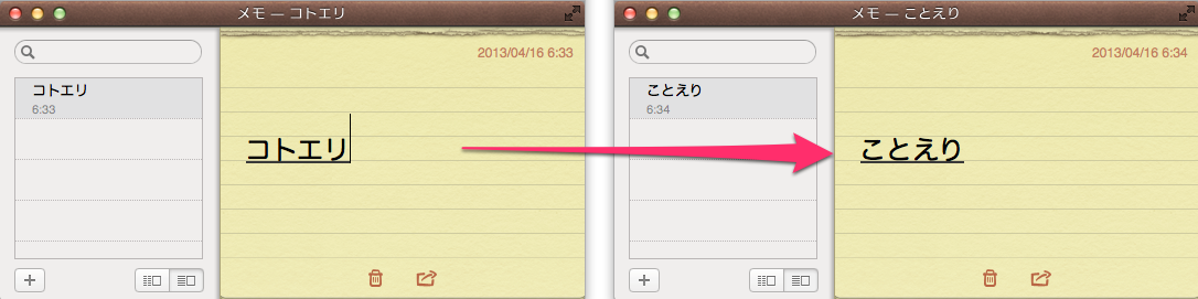 日本語入力中 (Enter キーの入力確定前) の入力ソース (「ひらがな」「カタカナ」など) の変換は、快適に入力を行う上で身につけたいですよね〜