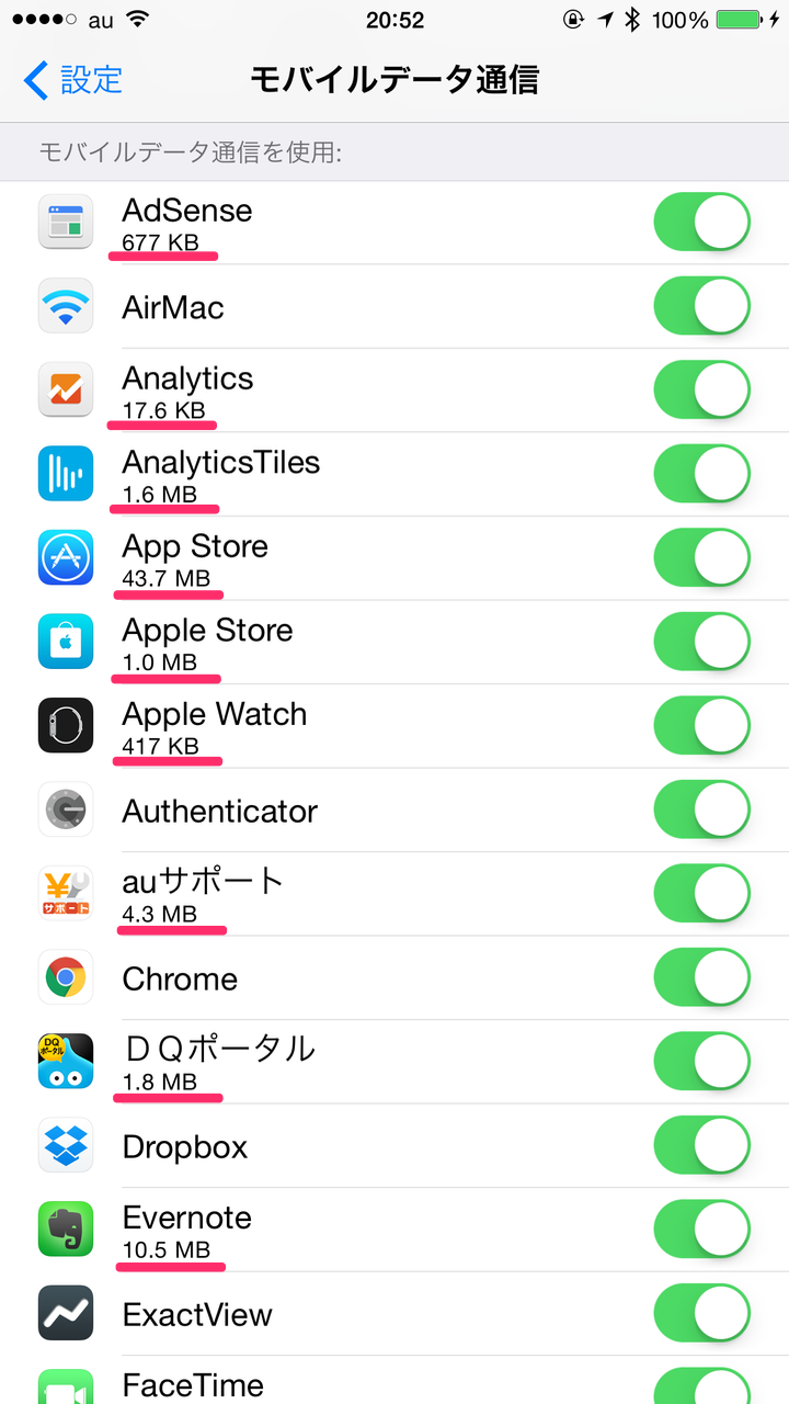 iPhone の通信プランは、docomo / au / Softbank 各社で同じような制限があります。節約したいんですけど、今のアプリはどこでいつ通信をしているかわかりにくく、知らない間に通信量が増えている場合もあるんですよねー。