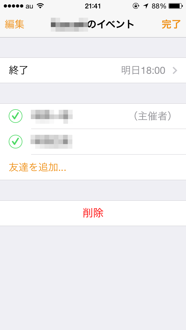 期限日時の変更、友達の追加も可能