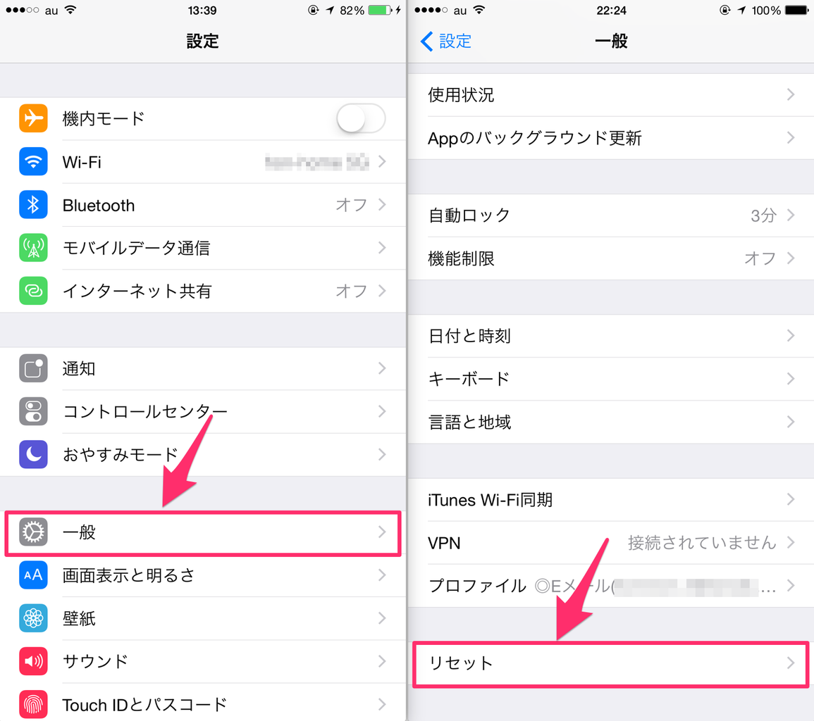 そんなときは、ネットワークのリセットをして良くなるかどうかを確認してみましょう。「設定」アプリを起動し、「一般」⇒ 一番下にある「リセット」と選択します。