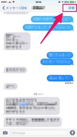 メッセージを送受信する画面で、右上の「詳細」をタップします。